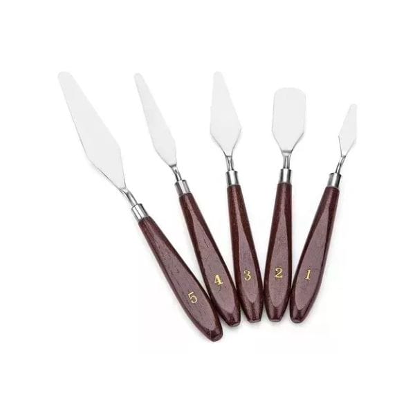 Este conjunto incluye 5 unids paleta de espátulas con diferentes tamaños – Hechos de acero inoxidable durable y con las manijas lisas. – Espátulas necesarias para profesionales o Hobby artistas. – Mangos angulados ayudan a mantener la mano de superficie de la pintura del artista. Contorneada mangos de madera son agradable al tacto.